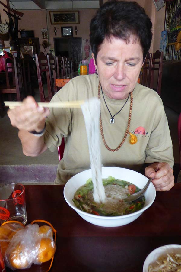 14 Uhr erreichten wir dann den Ort Phoukhoun, das Ziel für die heutige Mittagspause und hatten nach kurzer Wartezeit alle eine frisch zubereitete, leckere Nudelsuppe vor uns stehen.