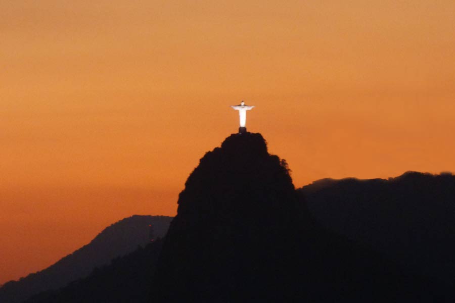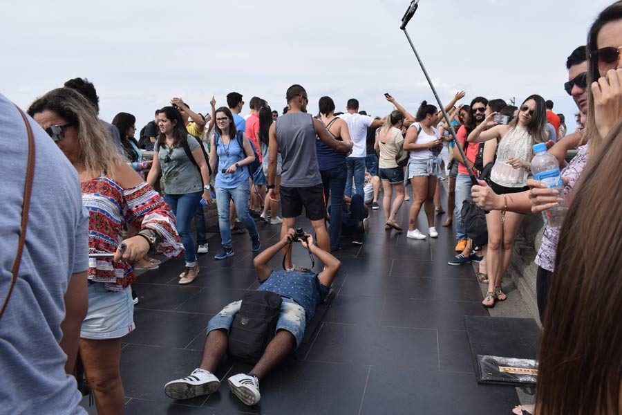 Das Wetter war heut schon besser als gestern und die Aussicht dementsprechend auch. Das Gedränge auf der Plattform vor der Statue ist groß und jeder möchte einen Schnappschuss mit der 31 Meter hohen Statue von 1931 im Hintergrund erhaschen. Besonders beliebt waren die Fotos im Liegen, dazu gab es extra Matten.