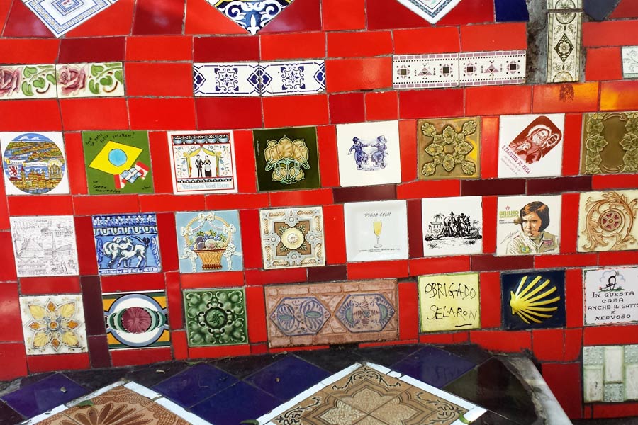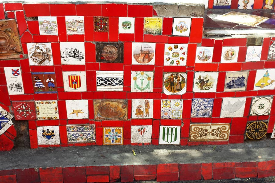 Es taucht immer wieder das Motiv einer schwarzen schwangeren Frau auf. Der aus Chile geflohene Selarón wollte damit die Geschichte seiner zurückgelassenen schwangeren Frau, die leider verstarb, bevor er sie nach Brasilien nachholen konnte, verarbeiten. Bis zu seinem Tode 2013 arbeitete der exzentrische Künstler er an dieser Treppe.