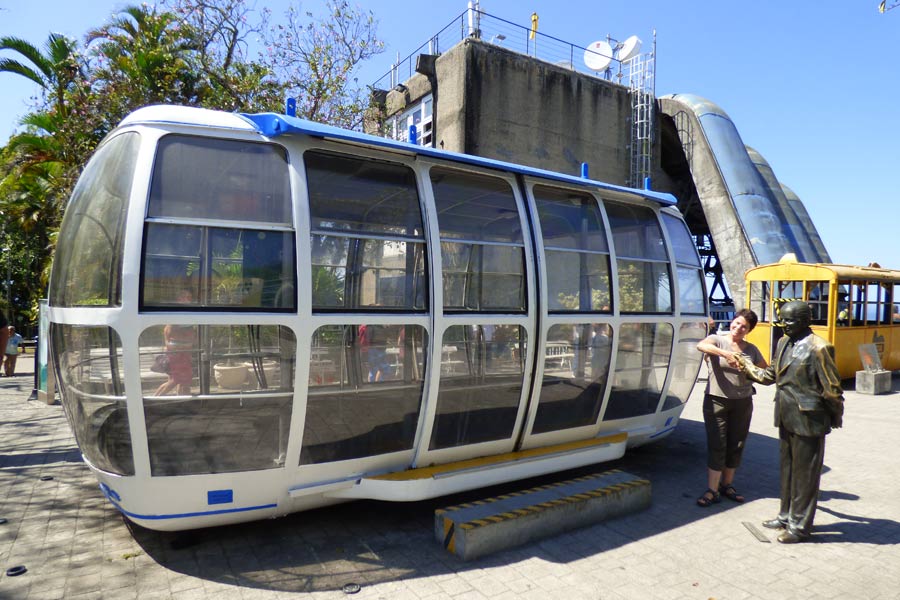 Nach dem sehr guten Frühstücks-Buffet begannen wir den Tag mit einer Fahrt mit der Seilbahn auf den 396 Meter hohen "Zuckerhut". Allerding war heute dazu ein sehr ungünstiger Tag, denn es war total trübe und dunstig, so dass man von oben kaum etwas in der Ferne erkennen konnte und wir die berühmte Aussicht auf Rio nur ahnen konnten. Die Kassen waren heute auch sehr schwach besucht.