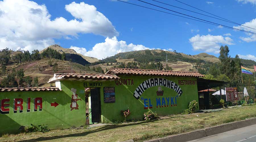 Um 13 Uhr bekamen wir Hunger und beschlossen, uns mit dem Taxi zum Restaurant "Pachapapa" in der Altstadt fahren zu lassen, das als Spezialität gegrilltes Meerschweinchen anbot. Der Weg dahin war verdammt steil und wir hatten keine Lust zum Laufen. Selbst das Taxi hatte seine Probleme mit den engen steilen Gassen.