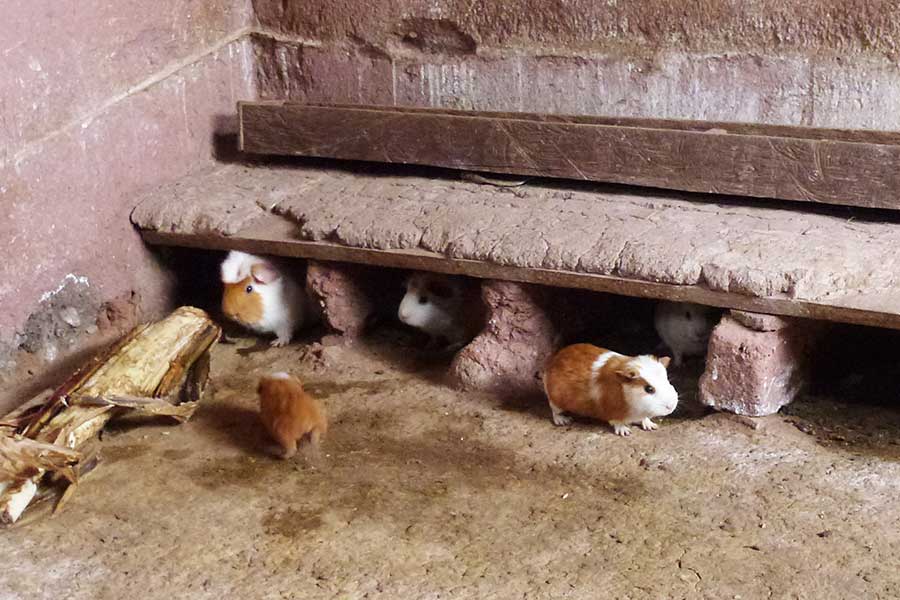 Im Nebenzimmer krabbelten einige niedliche Meerschweinchen umher - sicher der Braten für die nächsten Feierlichkeiten. Diese Tiere werden in Peru zu besonderen Gelegenheiten sehr gern verspeist. Später wollten wir das auch mal probieren.