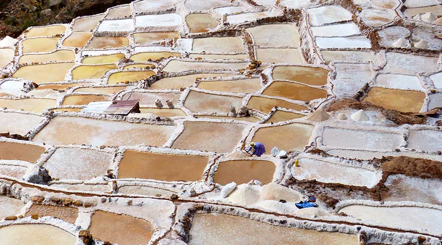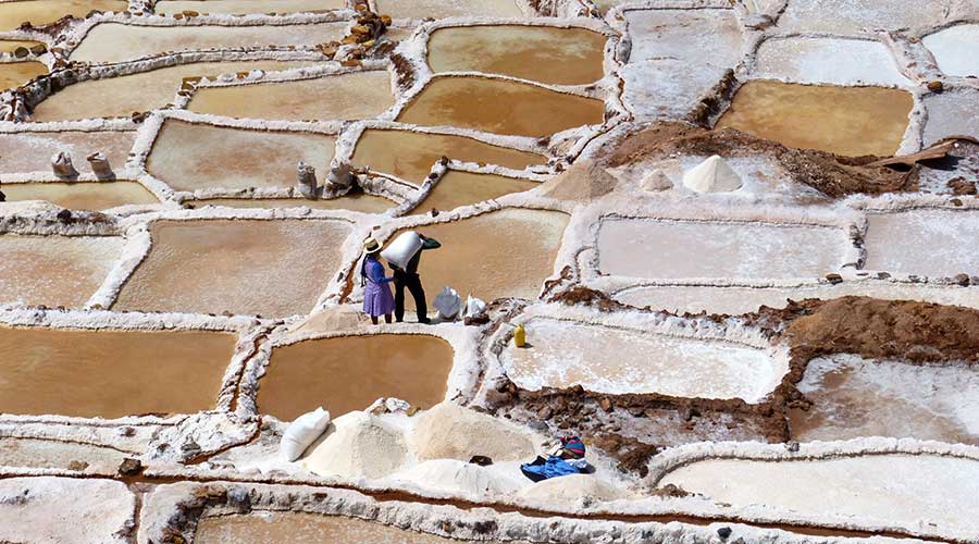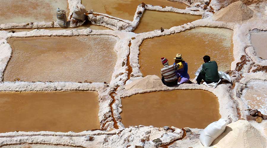 Sie stammen ebenfalls noch aus der Inkazeit. Schon damals wurden die fast 3.000 Salzbecken auf die Familien der umliegenden Dörfer aufgeteilt, damit jeder eine Einnahmequelle hatte, denn Salz war zur damaligen Zeit fast mit Gold zu vergleichen. An dem Berghang gibt es nur eine einzige kleine salzhaltige Quelle, welche über ein gut erdachtes System von kleinen Kanälen die verschiedenen Becken speist.