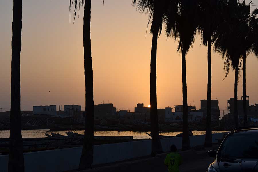Die nun endlich mit zwei Stunden Verspätung beginnende Kutschfahrt durch Saint-Louis ins Fischerviertel Guet Ndar gestaltete sich durch die inzwischen untergehende Sonne und den aufkommenden Wind ziemlich kühl und für gute Fotos gab es leider am Ende der Fahrt zu wenig Licht.