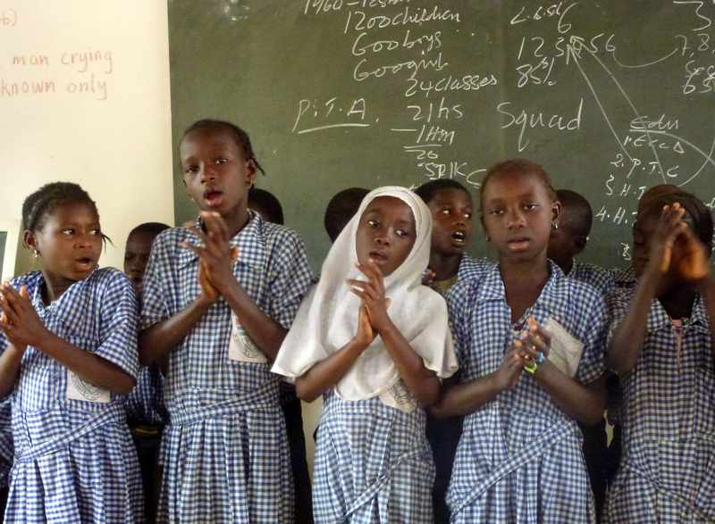 In der Schule in Sanyang wurden wir vom Direktor begrüßt, der uns interessante Dinge über das Bildungswesen in Gambia erzählte und anschließend sangen einige Schüler Lieder in verschiedenen Sprachen, bevor wie die Schule besichtigten.