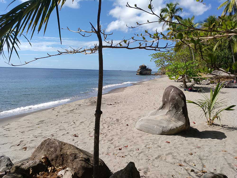 Nach 90 Minuten Botanischem Garten fuhren wir weiter zum heutigen Erholungsort, der Anse Cochon. Sie ist auf dem Landweg nur über das Restaurant des Ti Kaye Resort & Spa zu erreichen.