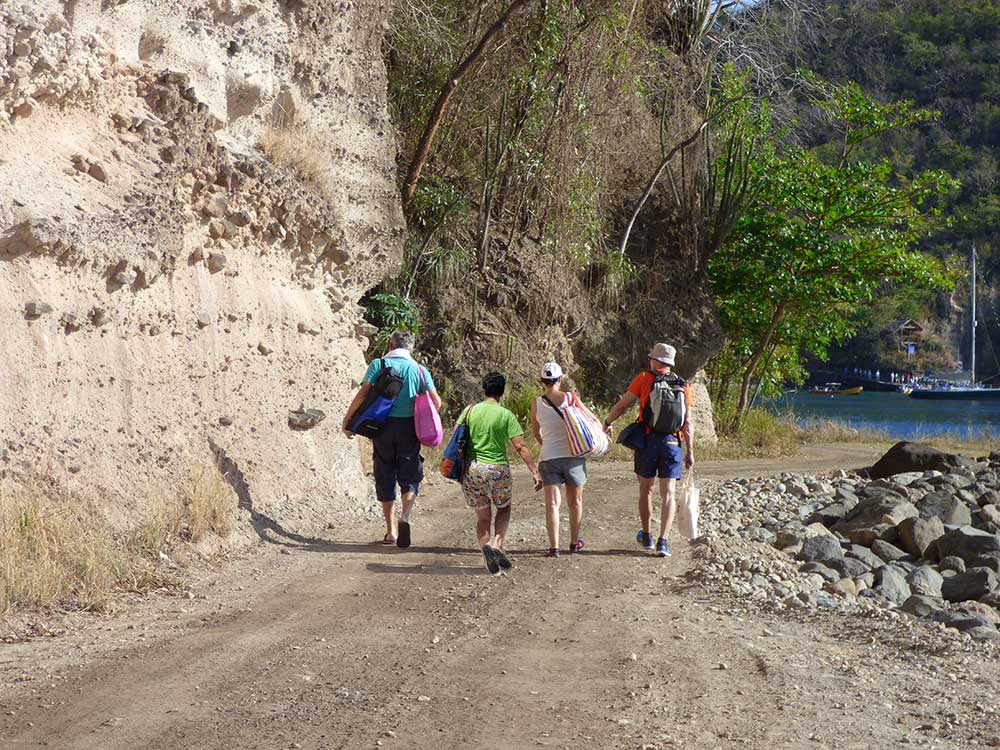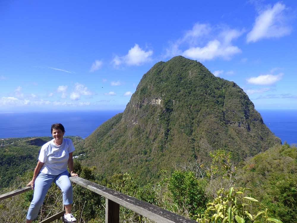 Der Rundweg ist, abgesehen von einigen Stufen, leicht zu begehen. Von dem oberen Punkt kann man die beiden Pitons in voller Pracht vor sich sehen. Obwohl man die Tour mit Führer machen kann, beschlossen wir vier, den Spaziergang allen zu unternehmen, um unser Tempo selbst zu bestimmen. Am Ende unseres Rundganges kamen uns Gruppen von Kreuzfahrt-Touristen mit lautstark erklärenden Guides entgegen, was uns in unserer Entscheidung bestärkte, auch die nächsten Tage zeitig auf Tour zu gehen.