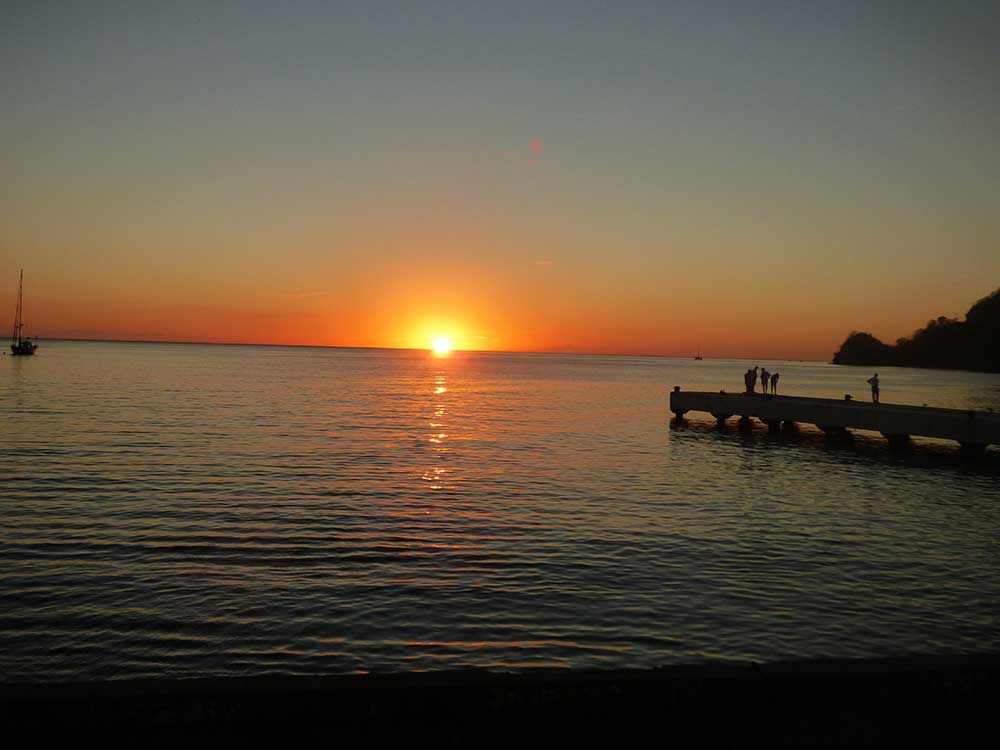 16.30 Uhr verließen wir diesen schönen Ort und fuhren zurück nach Souvriere, um im Restaurant "Petit Peak" zu Essen und auf den Sonnenuntergang zu warten. Wir bestellten Mahi Mahi-Fisch und Grillfisch. Unsere Freunde luden uns zum Dank für die Reisevorbereitungen zum Essen ein - eine nette Geste!