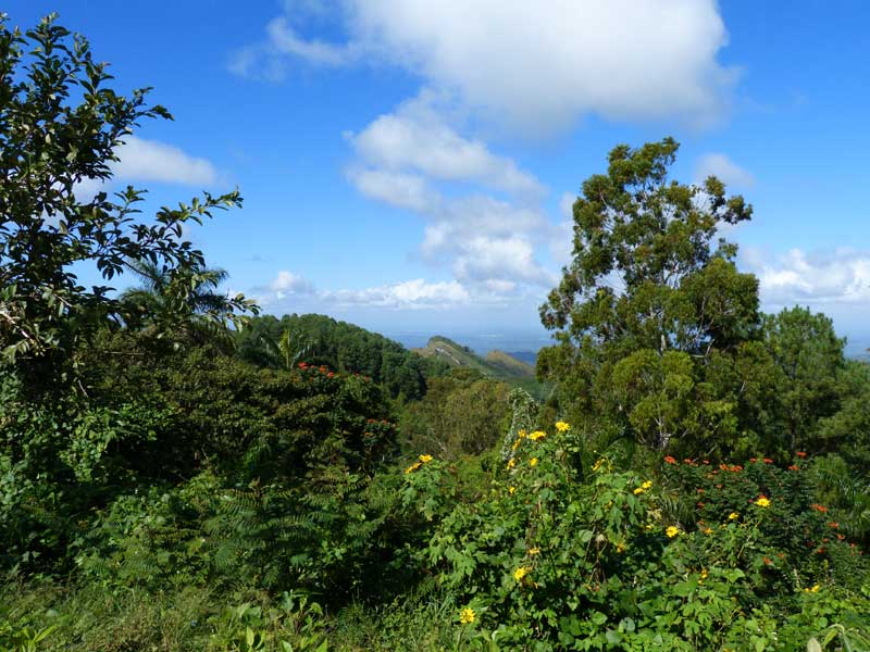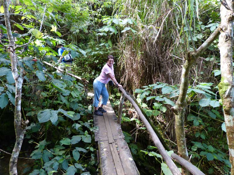 Dann begann eine interessante Tour durch den Urwald mit kleinen Wasserfällen, Holzstegen und üppigem Grün. Am Ende des Weges folgte man einem Anstieg und hatte am Gipfel einen schönen Ausblick auf das Tal. Ein Guide schenkte danach jedem von uns eine nussartige Frucht, die Glück in der Liebe bringen soll.