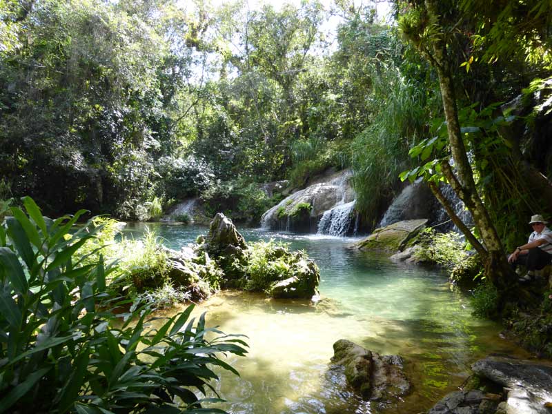 Nach einem guten Frühstücksbuffet in La Union startete der Bus in Richtung Trinidad, wo wir zwei Nächte übernachten würden. Da es nur 35 km entfernt war, stand Mittags eine Wanderung im Park "El Nicho" auf dem Tagesprogramm. Wir machten vor der Abfahrt noch einen schnellen Bummel durch den Park, um ihn bei Tageslicht zu sehen und danach begann die Busreise.
