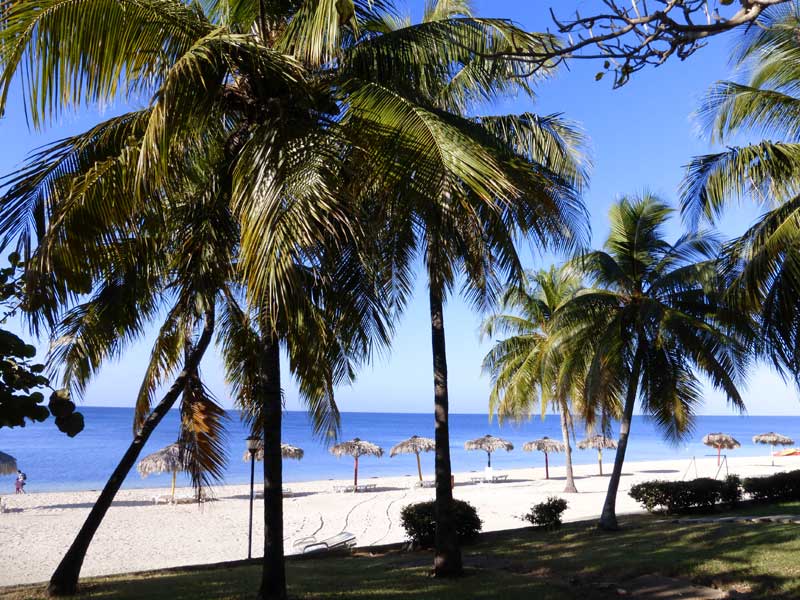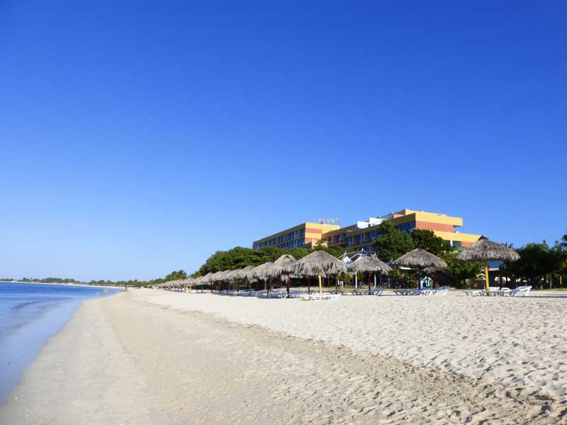Zurück im rustikalen Restaurant hatten wir ausgiebig Zeit, das vorbestellte Essen zu verspeisen, bevor es wieder mit den Lastwagen zurück zum wartenden Bus ging. Dieser brachte uns dann zum All Inclusive Hotel "Ancon" nach Trinidad. Der Strand direkt am Hotel war wunderschön und das Klima auf der Südseite der Insel war wesentlich wärmer als der Norden. Hier hätte man es eine Woche zum Baden aushalten können. Aber das erwartete uns ja übermorgen auf Cayo Coco im Norden.