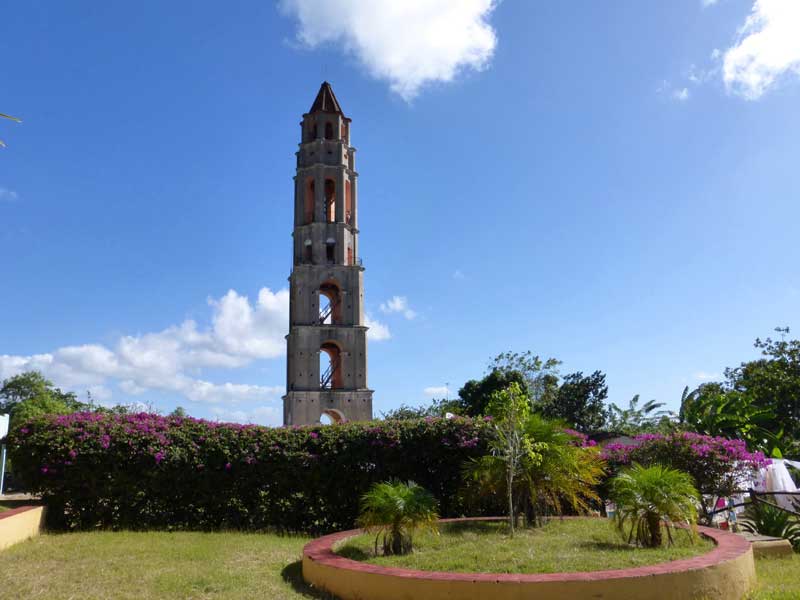 Der 50 m hohe Glockenturm hat sieben Stockwerke und diente seit 1816 der Besitzerfamilie Iznaga zur Beaufsichtigung der Sklaven auf den Zuckerrohrfeldern. Das Mahnmal kann bestiegen und das ehemalige Wohnhaus besichtigt werden. Monika wagte den Aufstieg - ich dagegen fand die zahlreichen Souvenirhändlerinnen und Besucher als lohnende Fotomotive viel interessanter.