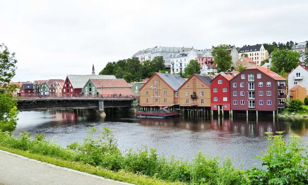 Am Morgen des 15. Juni erreichten wir gegen 10 Uhr Trondheim, der nach Oslo und Bergen drittgrößten Stadt Norwegens. Leider war das Wetter nicht so angenehm und so zeigte sich uns der Ort grau bewölkt mit einzelnem Nieselregen. Trotzdem war der Stadtbummel, den wir selbständig durchführten (denn die organisierte Tour hatte kein gutes Preis-/Leistungs-Verhältnis), sehr interessant.