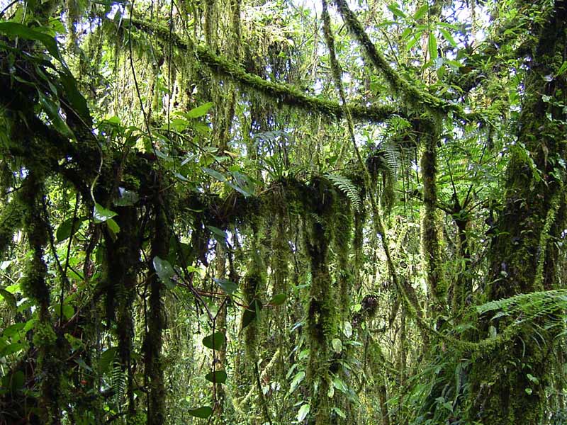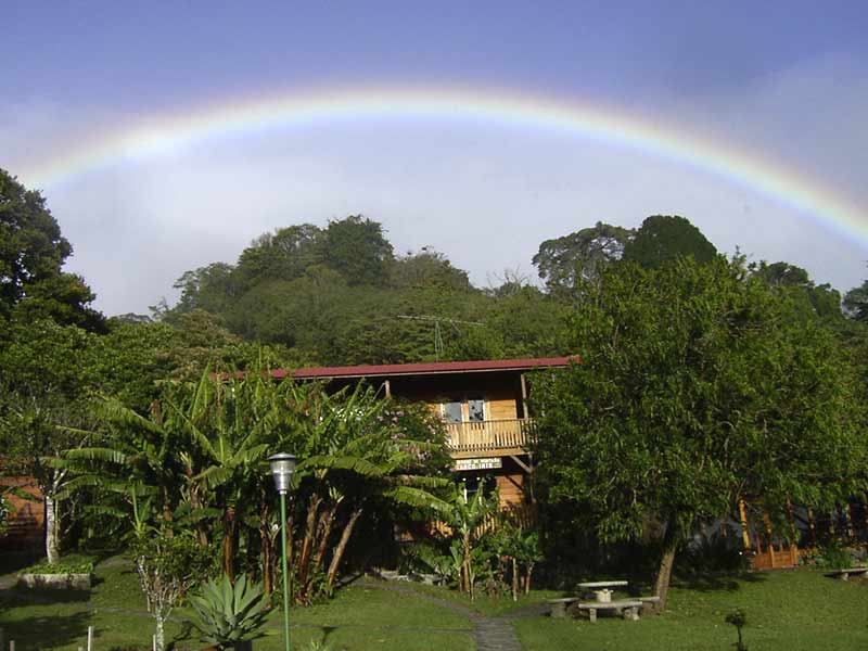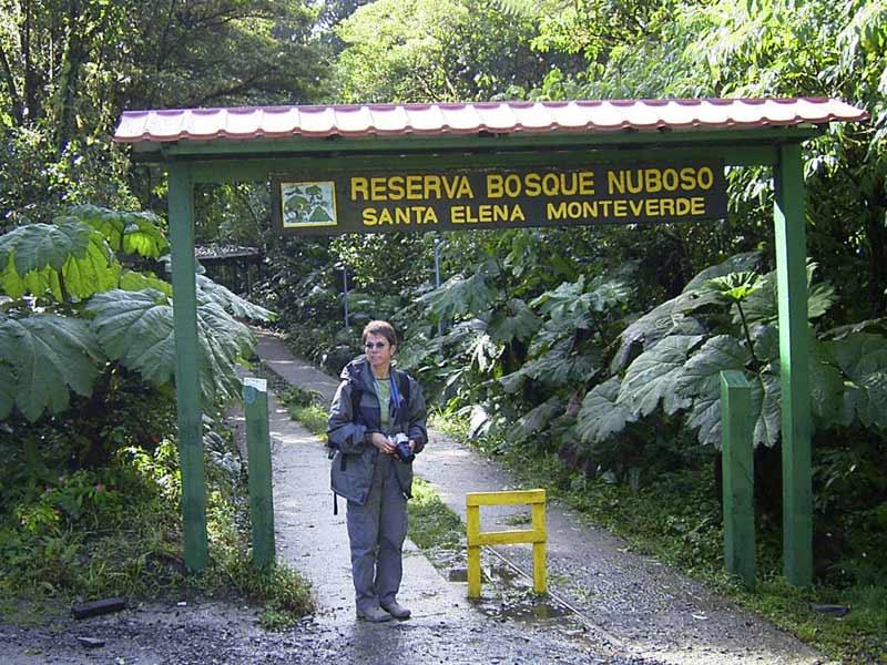 Weiter ging es in fünf Stunden mit Interbus nach Santa Elena in die „Arco Iris Lodge“. Sie liegt am Rande des Regenwaldes und wurde bei unserer Ankunft von einem großen Regenbogen überspannt. Am Abend aßen wir in einem gemütlichen Wirtshaus. Da uns die kleinen rundlichen Gläser, in denen wir den Rum serviert bekamen, sehr gut gefielen, kauften wir dem Wirt zwei davon ab und denken nun zu Hause oft an diesen angenehmen Aufenthalt. Am nächsten Tag machten wir eine Tour zum „Reservat Monteverde“, in welchem wir auf langen Hängebrücken über die Wipfel des Nebelwaldes liefen. Soviel Grün auf einen Fleck sieht man nirgendwo ans. Hier ist wirklich alles bewachsen.