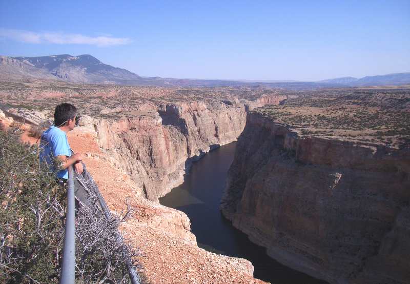 8.15 Uhr Abfahrt in Richtung Osten über die 14Alt (Lovell). Wir hatten in einem Reisebericht gelesen, dass sich ein Abstecher zum Bighorn Canyon lohnt – also haben wir es getan – und es lohnt sich wirklich. Unterwegs liefen sogar ein paar Wildpferde über die Straße und der Blick in den Canyon war wunderschön.