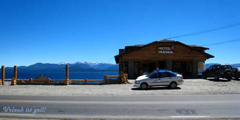 Unser Hotel „Huemul“ erreichten wir bei strahlendem Sonnenschein aber etwas kühleren Temperaturen als bisher gewohnt direkt am Nahuel Huapi-See. Zunächst hatte man angeblich keine Zimmer für unsere Gruppe, doch nach etwas Wartezeit wurden wir mit einem Zimmer mit Seeblick entschädigt – der Ausblick scheute nicht den Vergleich mit der europäischen Schweiz.