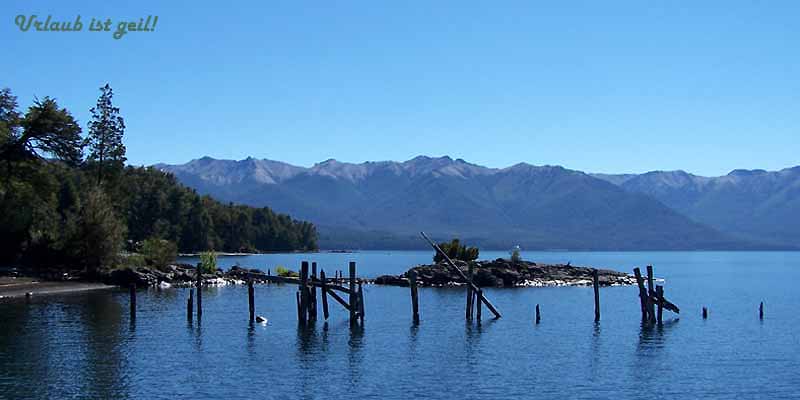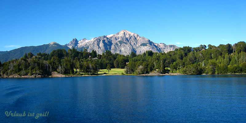 Nach einer kurzen Busfahrt mit Stopp an einer kleinen Kirche mit grandiosem Panoramablick auf das Bermassiv fuhren wir zur Anlegestelle der Boote. Mit der netten deutschstämmigen Schiffsbegleiterin „Herzilein“ (ihren Opa hatte es 1903 von Deutschland nach Argentinien verschlagen und sie war von einer gestressten Lehrerin zur gemütlichen Reiseführerin mutiert) fuhren wir vorbei an wunderschönen Gebirgslandschaften zu einer Insel, wo wir lustige „Bambi-Bäume“ und riesige argentinische Lärchen auf einer moderaten 40 minütigen Wanderung durch die Parks bestaunen konnten (Bambi-Bäume deshalb, weil die rotbraune Färbung der Rinde einst Walt Disney zur Farbgebung von Bambis Fell inspiriert haben soll).