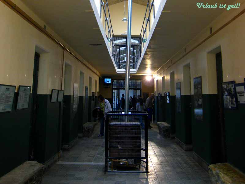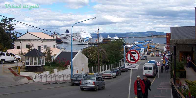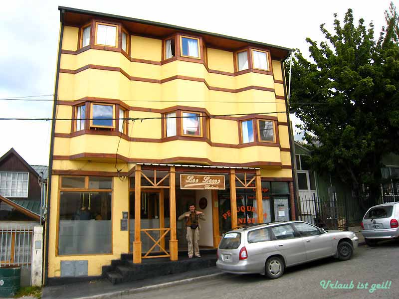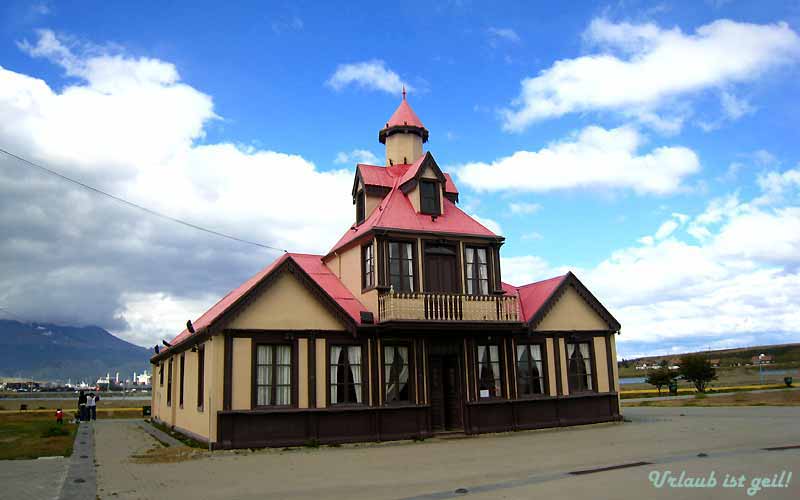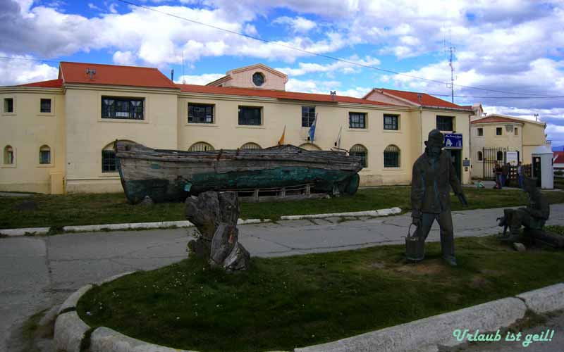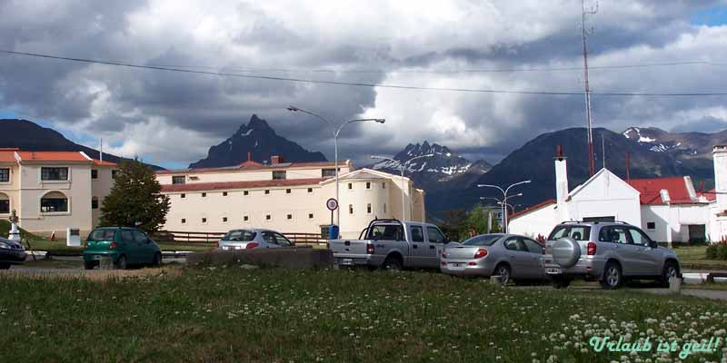Der Transferbus zum Hotel wartete schon auf uns. Diesmal wurde unser Gepäck sogar in einem separaten Auto zum Hotel gebracht. Wir checkten kurz ein – das Hotel war okay – und begaben uns 10 Minuten später auf Erkundungstour. Zuerst bekamen unsere Pässe in der Touristeninformation einen Stempel für den Besuch der „südlichsten Stadt der Welt“, danach tranken wir im Café einer Schokoladenfabrik eine heiße Schokolade (einen Coupon dafür hatten wir gleich beim Empfang im Bus bekommen). Auch eine Besichtigung des ehemaligen berühmten Gefängnisses von Ushuaia stand auf unserem Programm.