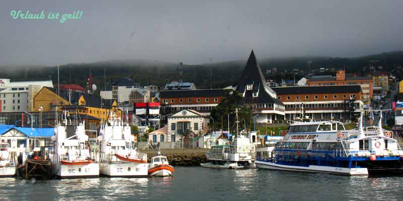 Nach einem dann doch noch relativ ruhigen Flug (der Bordservice wurde trotzdem wegen der Turbulenzen eingestellt) landeten wir wohlbehalten auf Feuerland, in Ushuaia, der südlichsten Stadt der Welt. Das Gepäck kam kleckerweise auf dem Laufband an und wir waren zum Schluss froh, dass nichts fehlte.