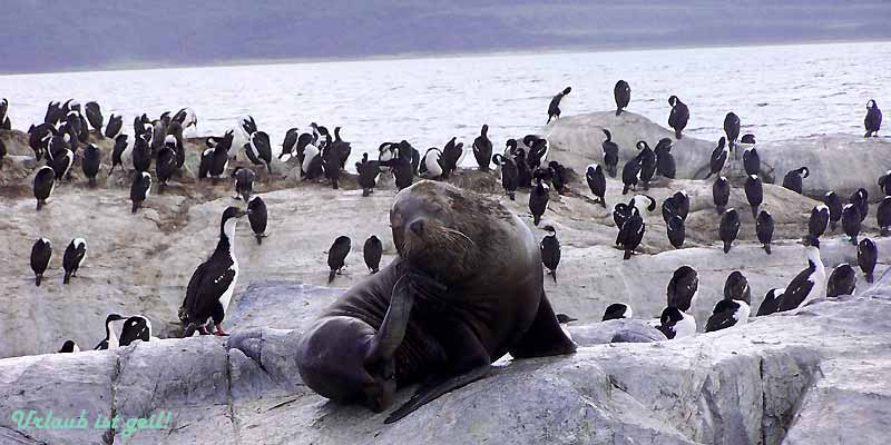 Am letzten Tag in Ushuaia weckte uns um 7.15 Uhr das laute Plätschern des Regens. 8.45 Uhr wurden unsere Koffer zum Flughafen gefahren, während wir uns auf den Weg zur Bootsanlegestelle machten (der Regen hatte zum Glück inzwischen aufgehört). Auf der Fahrt im Beagekanal verwöhnte uns dann doch wieder (wie gewohnt) die Sonne und wir konnten gute Fotos von der Insel mit hunderten Kormoranen und einigen Seelöwen machen.