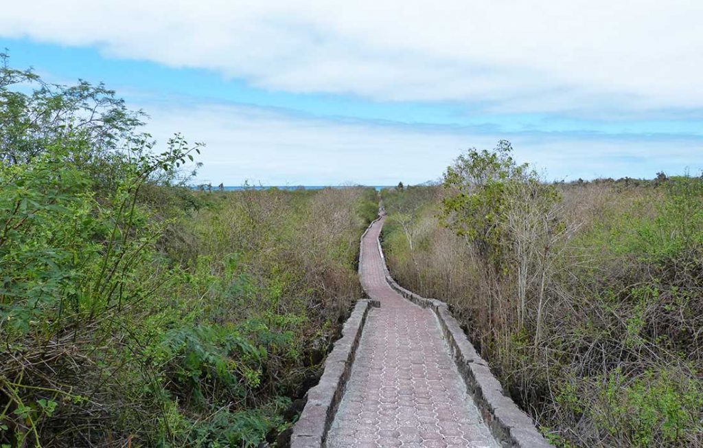Mittags erreichten wir den Flughafen in Baltra auf Galapagos, bezahlten dort unsere Einreisesteuer und setzten danach mit dem Boot auf die Insel Santa Cruz über. Dort wartete schon der Bus, der uns vom Norden ganz in den Süden der Insel nach Puerto Ayora brachte. Zu Beginn der Fahrt stellte sich unsere sehr nette Reiseleiterin mit dem klangvollen Namen Vanessa Gallo Aguirre vor, die uns die nächsten Tage begleiten würde.