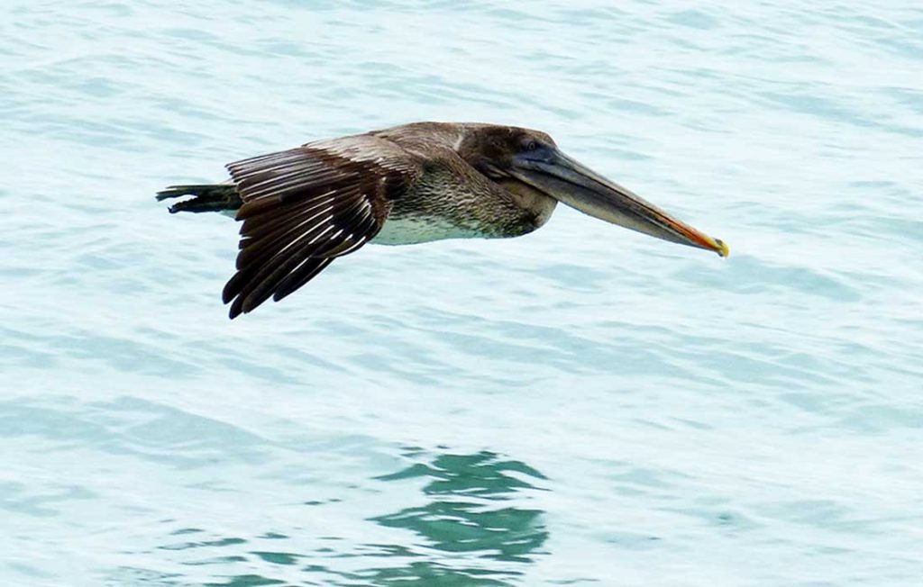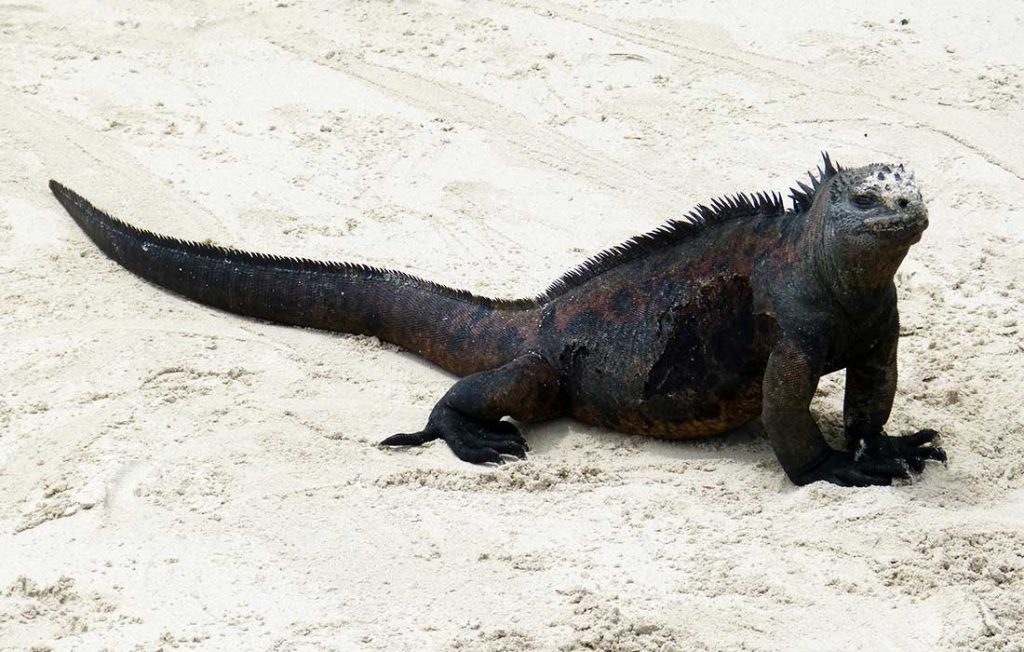 Uns begegneten auf den Weg fliegende Pelikane und eine kleine Kolonie von pechschwarzen Meeresechsen.