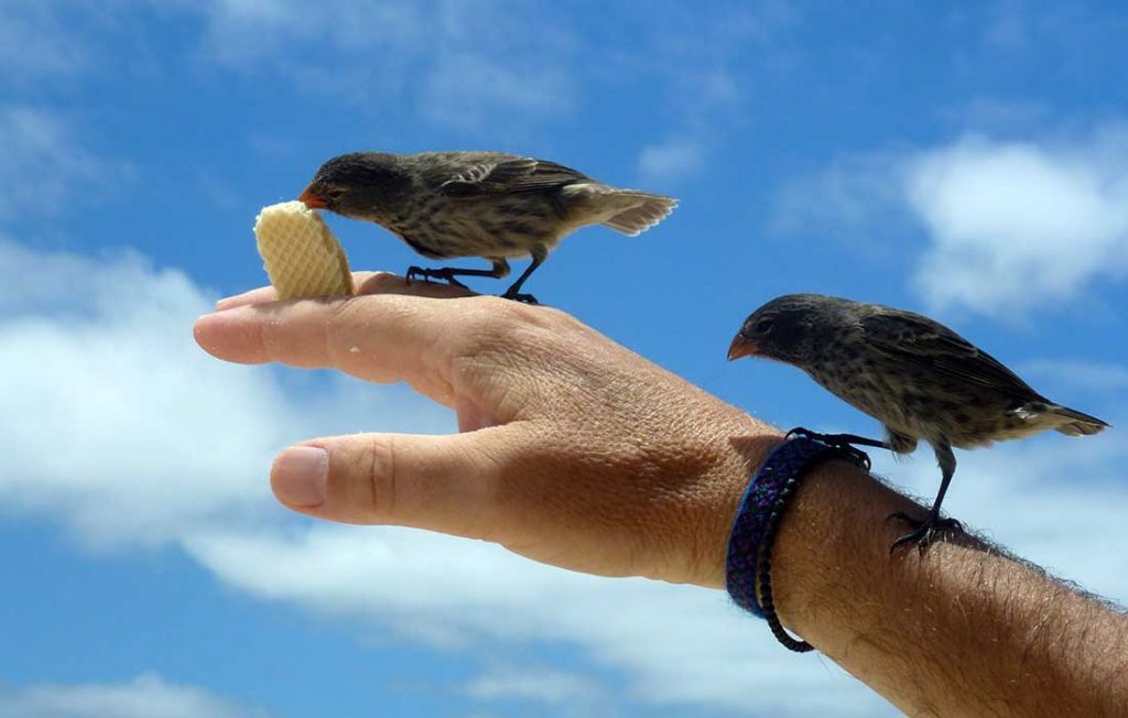 Im Außenbereich konnten wir davon einen Vorgeschmack bekommen. In kleinen Anlagen sahen wir Exemplare der Riesenschildkröten, einige Leguane und auch mehrere Galapagos-Finken, deren Vorfahren Charles Darwin 1835 zum Beweis seiner Evolutionstheorie untersucht hatte.