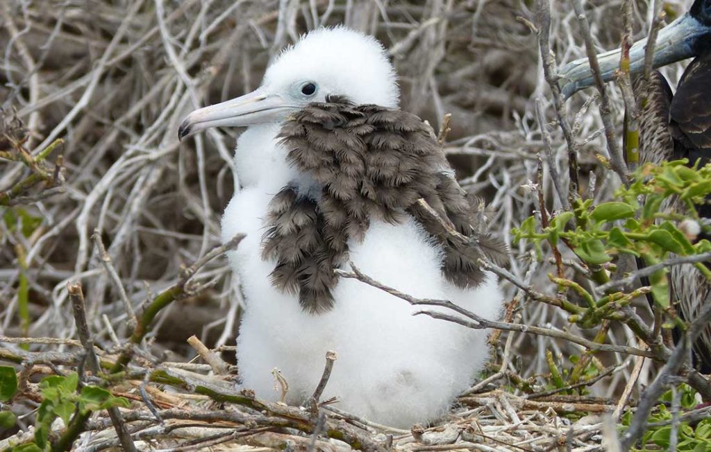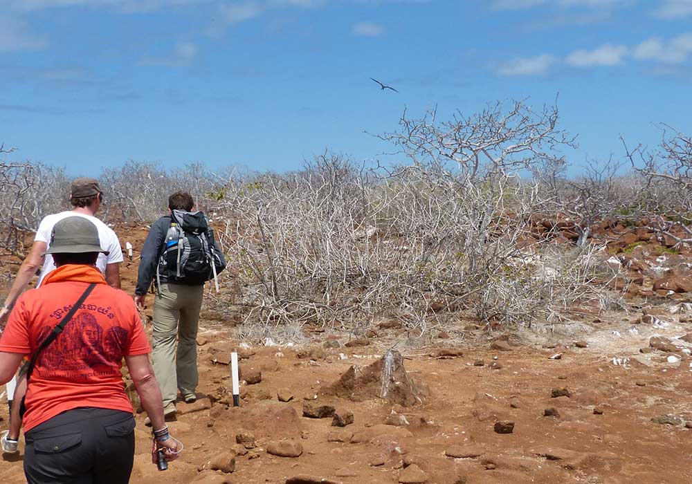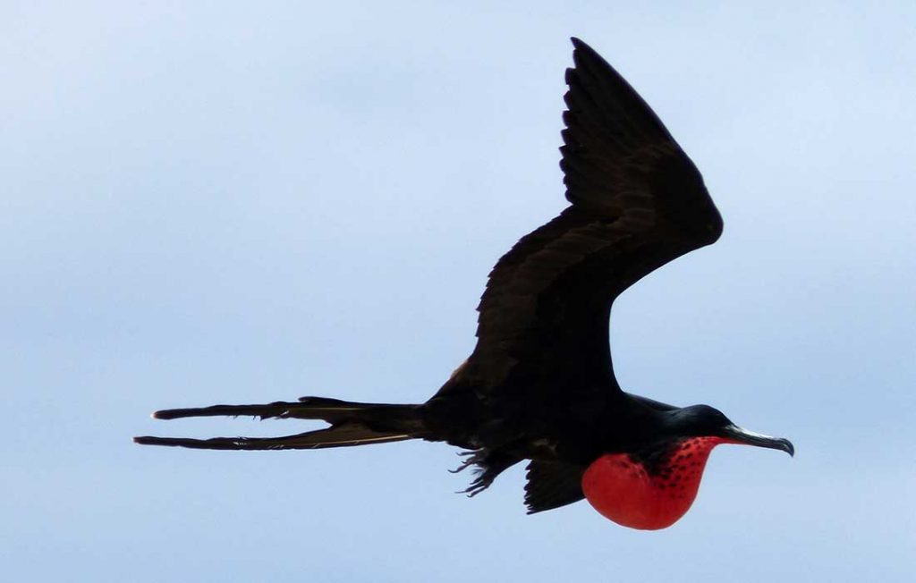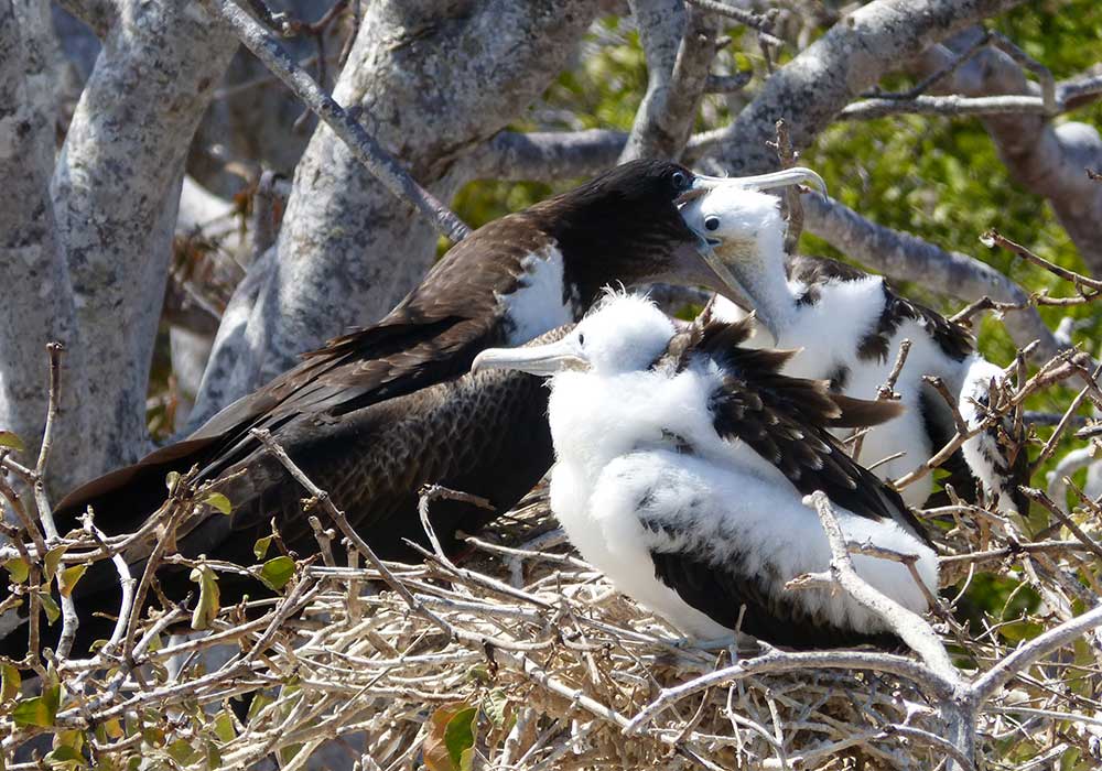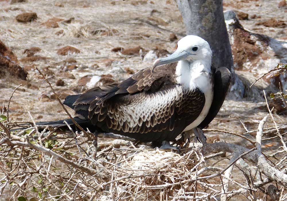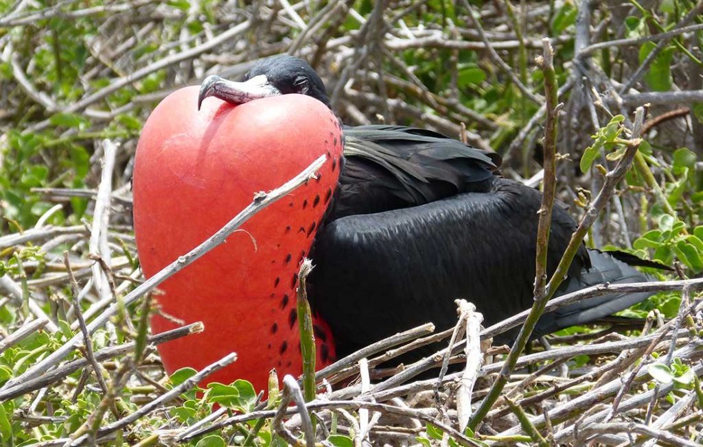 Sie sind sehr gute Flieger und in der Luft konnten wir sie gut an ihrem gegabelten Schwanz erkennen. Auf dem weiteren Weg, den unser örtlicher Führer mit uns ging und den wir zum Schutz der Tiere nicht verlassen durften, sahen wir sehr viele ihrer Nester. Fregattvögel können immerhin bis 26 Jahre alt werden.