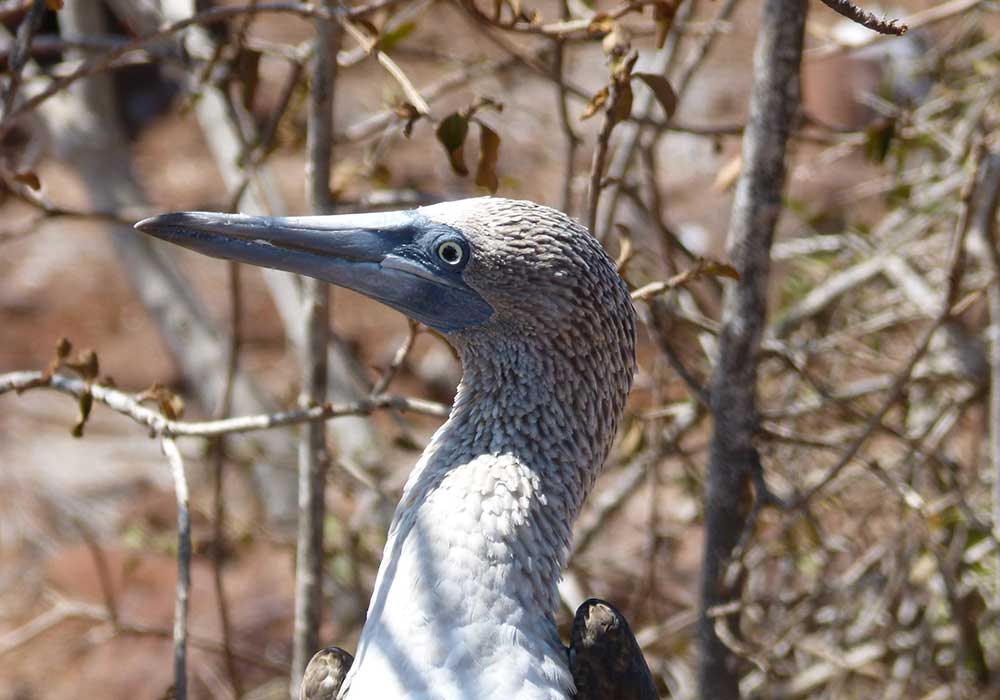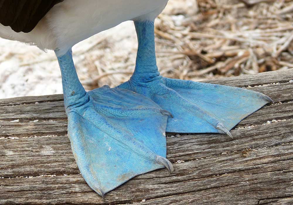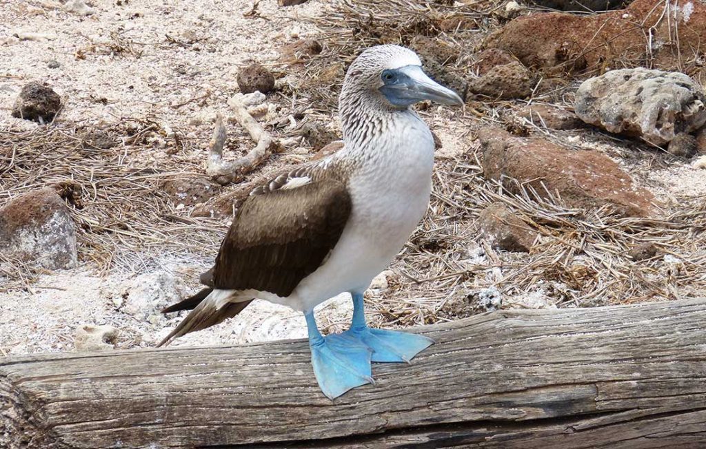 Am Ende der kleinen Wanderung durch das Vogelschutzgebiet erblickten wir eine kleine Kolonie von lustig aussehenden Blaufußtölpeln. Mit ihren herrlich blauen Füßen, die ihnen ihren treffenden Namen geben, liefen sie – etwas ungeschickt wirkend – auf einem Baumstamm hin und her.