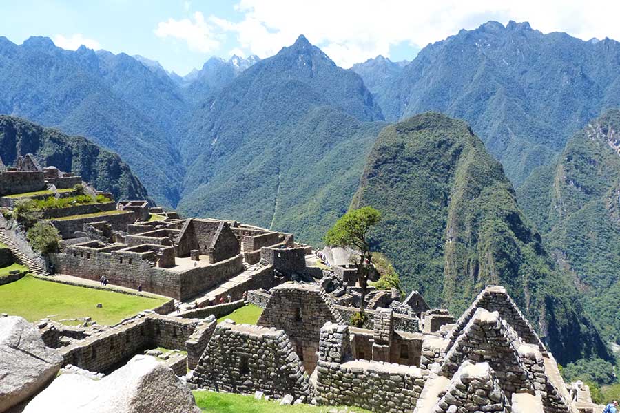 In ca. 90 Minuten brachte uns dann die Anden-Eisenbahn über Aguas Calientes durch reizvolle Landschaft nach Machu Picchu – und das bei strahlend blauem Himmel!